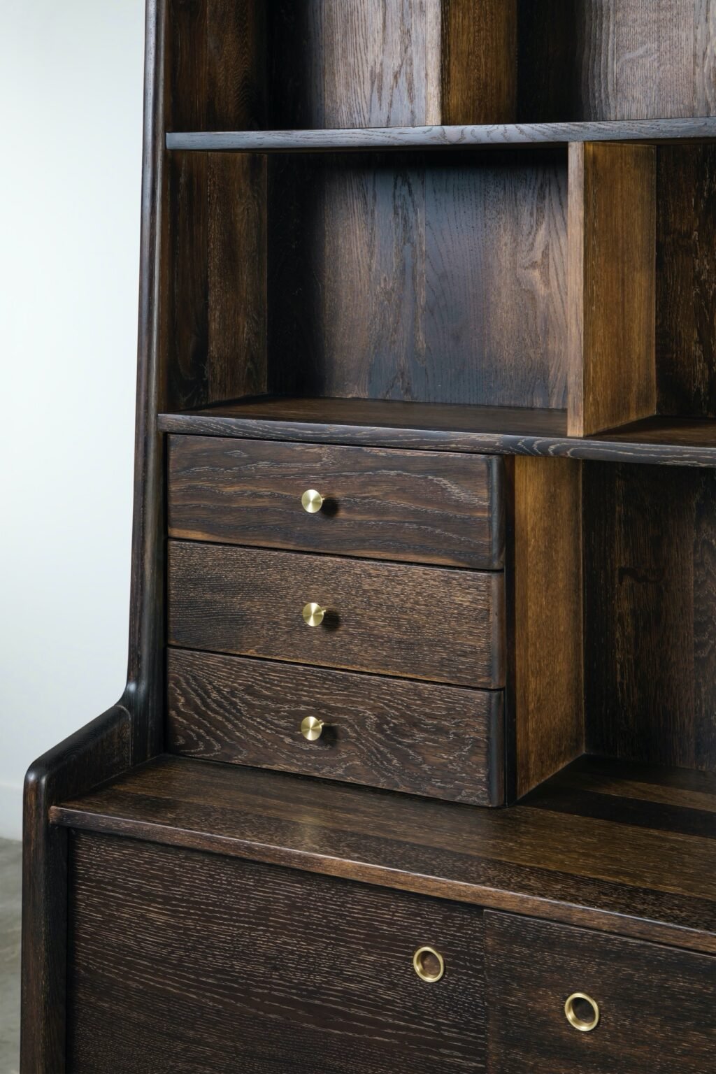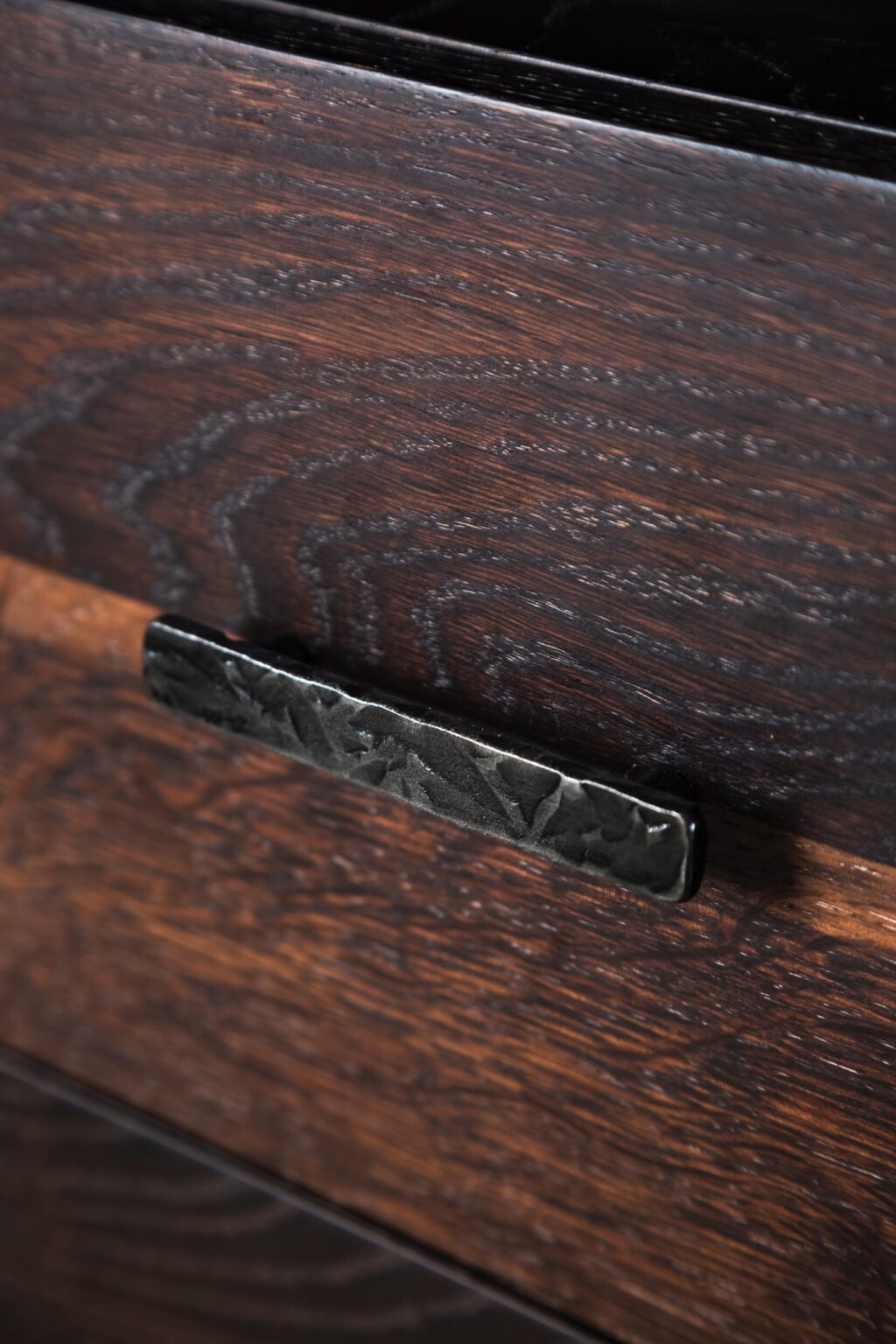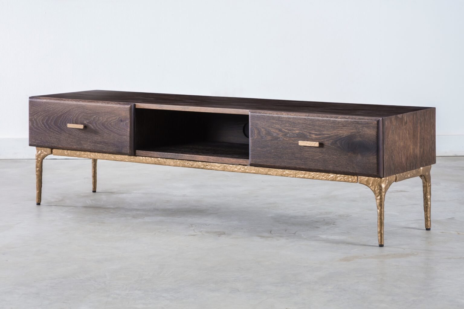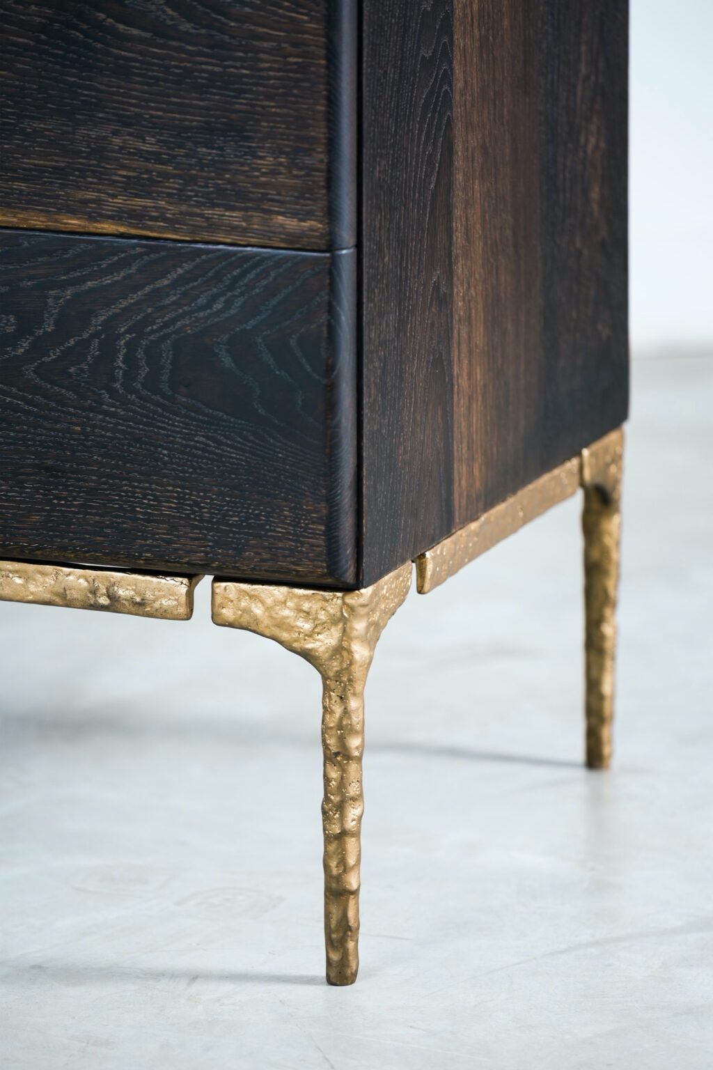 L140 × W80 × H74.5 CML160 × W80 × H74.5 CML180 × W90 × H74.5 CML200 × W90 × H74.5 CMBeautifully textured, hand-sculpted legs support table tops and cabinet fronts made from solid french oak. Brass butterfly details both decorate and reinforce.